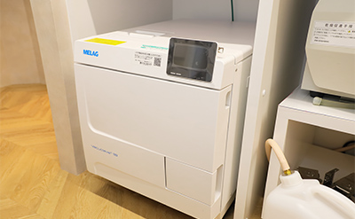 ヨーロッパ基準EN13060の最高ランクに位置づけられるクラスB滅菌器を導入し、複雑な構造の器具内部まで確実に滅菌処理を行っています。高圧蒸気と真空工程を組み合わせることで、ウイルスや細菌を徹底的に除去し、安心して治療を受けていただける環境を整えています。